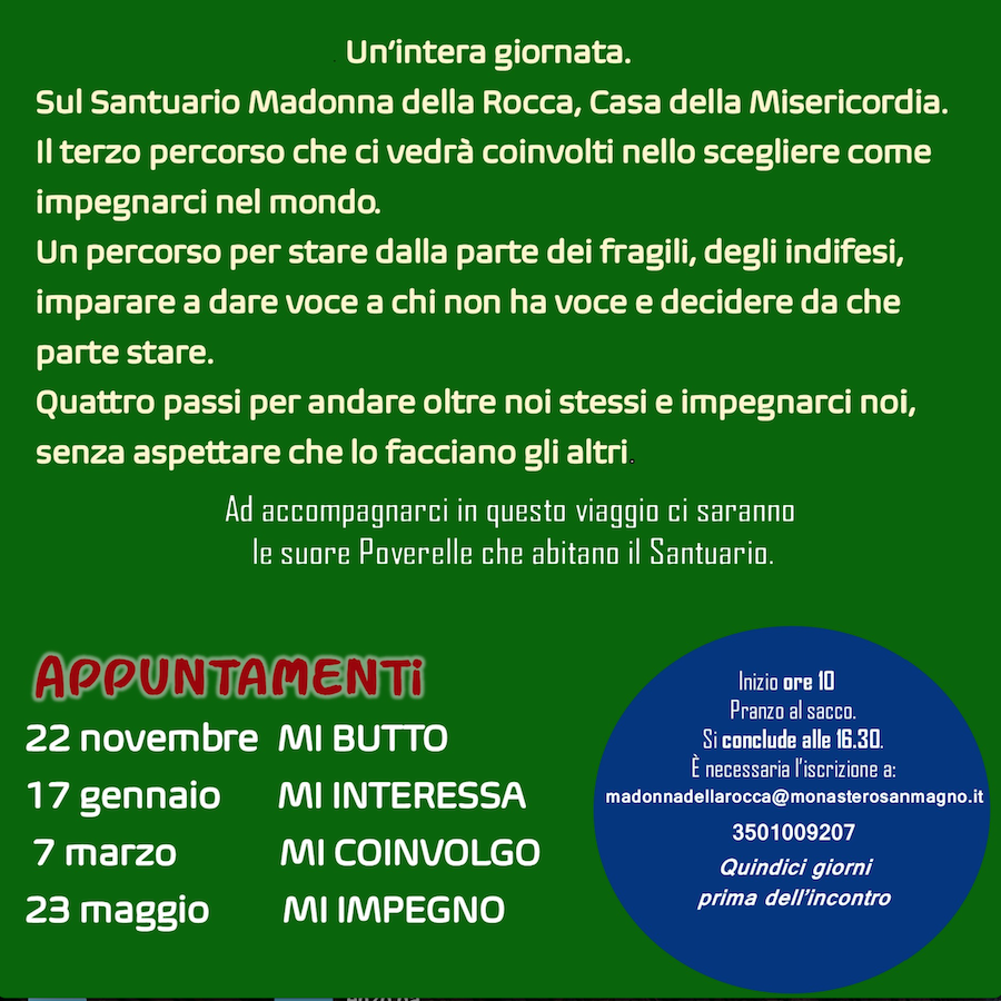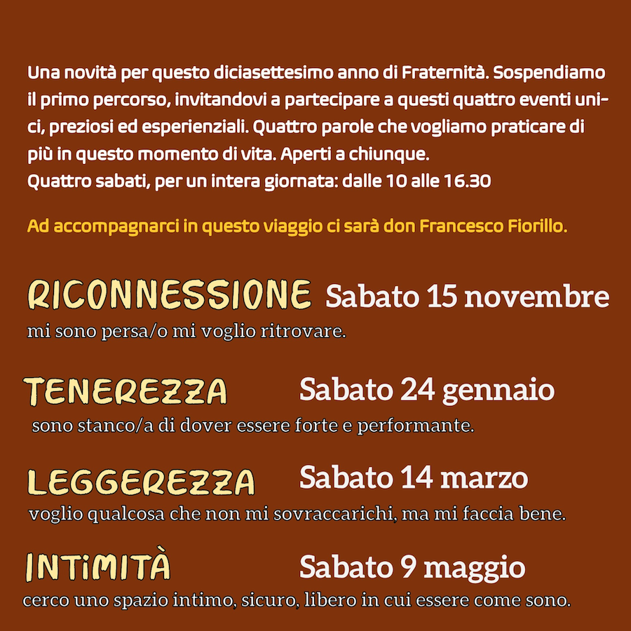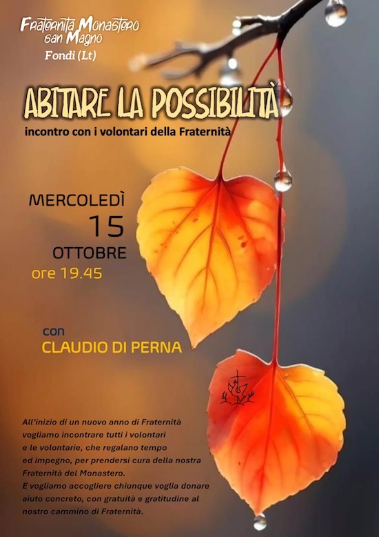 Potrà partecipare anche chi ha il desiderio di impegnarsi in gratuità e gratitudine per la cura della nostra Fraternità.